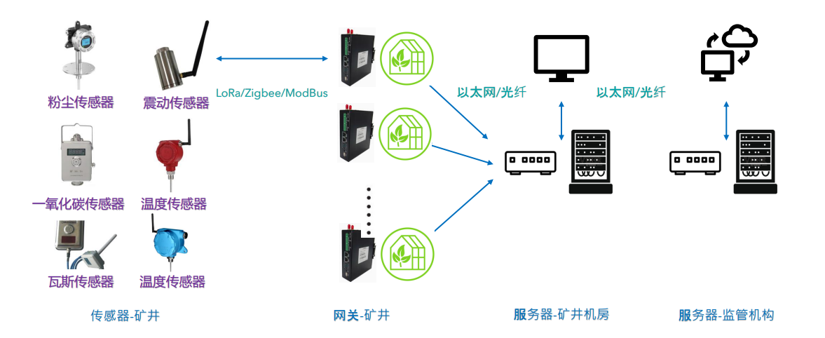 1、无线:矿井环境通常比较恶劣,现场布线难度较大,传感器一般使用电池供电,用低功耗无线传输数据到网关。